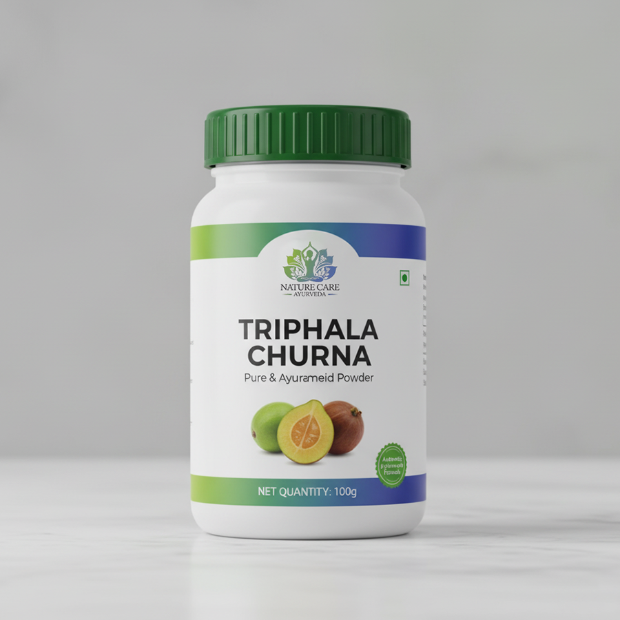 Naturecares Ayurveda’s Triphala Churna is a traditional Ayurvedic formulation recognized for its effectiveness in supporting digestion, detoxification, and colon cleansing. Developed from extensive Ayurvedic research, this natural laxative is recommended for relieving indigestion and enhancing overall gastrointestinal health. The formulation blends three potent fruits: Amla (Indian Gooseberry), Haritaki, and Bibhitaki. All these three constituents are collectively known as Triphala, meaning “three fruits” in Sanskrit. In this formulation, Amla enhances immunity and provides Vitamin C, Haritaki aids digestion and toxin elimination, while Bibhitaki supports respiratory wellness and helps manage body weight. Together, these ingredients work synergistically to purify the body, regulate metabolism, and strengthen the digestive system.